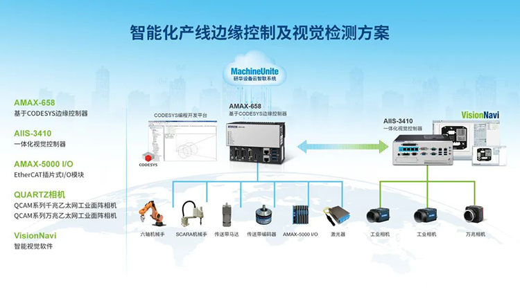 研华推出智能化产线边缘控制解决方案,可以将智能装备中需要的边缘计算、机器视觉以及设备远程运维诊断功能整合,有效提高设备生产效率和良品率,降低运维管理成本与能源消耗。