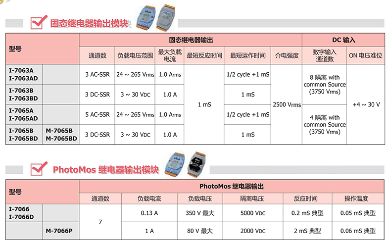 性能优良,内部有3000 VDC隔离,更具有高过压保护高开关量电压输入等性能供用户选择。产品型号:M-7033D